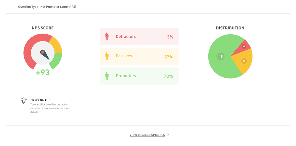 Net Promoter Score surveys are relatively easy to create. Remember I mentioned that they are simple one question surveys. Going old school with a paper form and a pen is clearly outdated. Try the new age way. Create your NPS surveys with RightSurvey. You can select the NPS template from our world-class and industry standard templates. Add your questions, save and share your survey. RightSurvey has diverse and flexible channels to share your surveys. Respondents simply launch the web link or scan the QR Code to fill the survey. With seamless integration with RightBot, they can also fill the surveys via Twitter, Facebook Messenger and WhatsApp. Get a summary of your responses, explore individual responses, view your charts and export your data in different formats. We calculate your NPS score in real time.